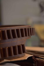 Διπλή φυσιγγιοθήκη χωρητικότητα φυσιγγίων ανάλογα την περίμετρο της μέσης. Δέρμα μοσχάρι με επένδυση στο πίσω μέρος με πιο λεπτό δέρμα.